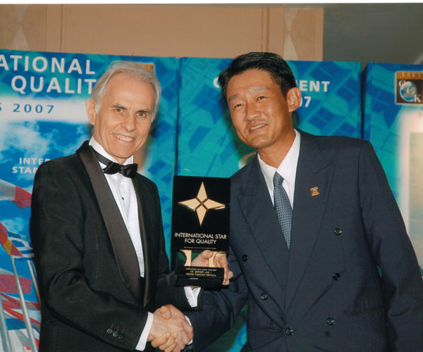 Law (right) receiving the International Star Award on behalf of Arkitek Pakatan Pertama from Prieto at the Paris Convention 2007 & Gala Dinner. PHOTO: GERARD LAW